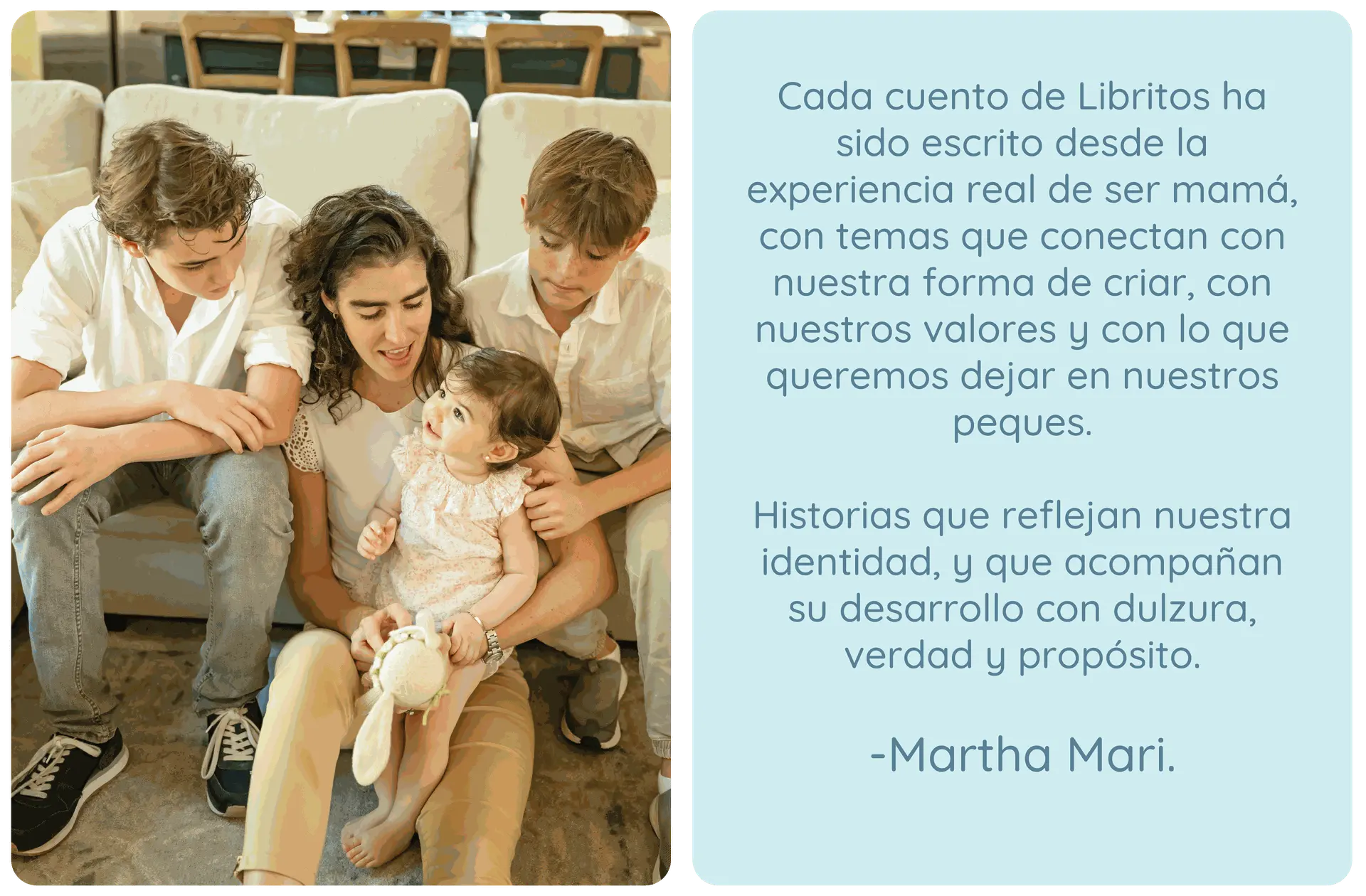 Cada cuento de Libritos ha sido escrito desde la experiencia real de ser mamá, con temas que conectan con nuestra forma de criar, con nuestros valores y con lo que queremos dejar en nuestros peques.