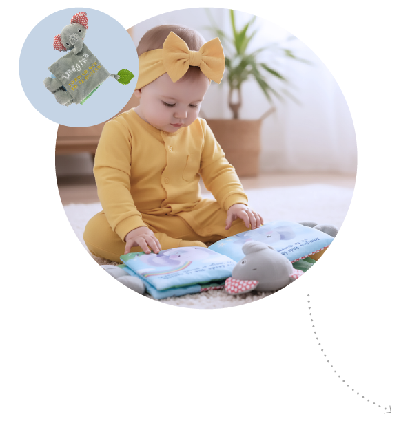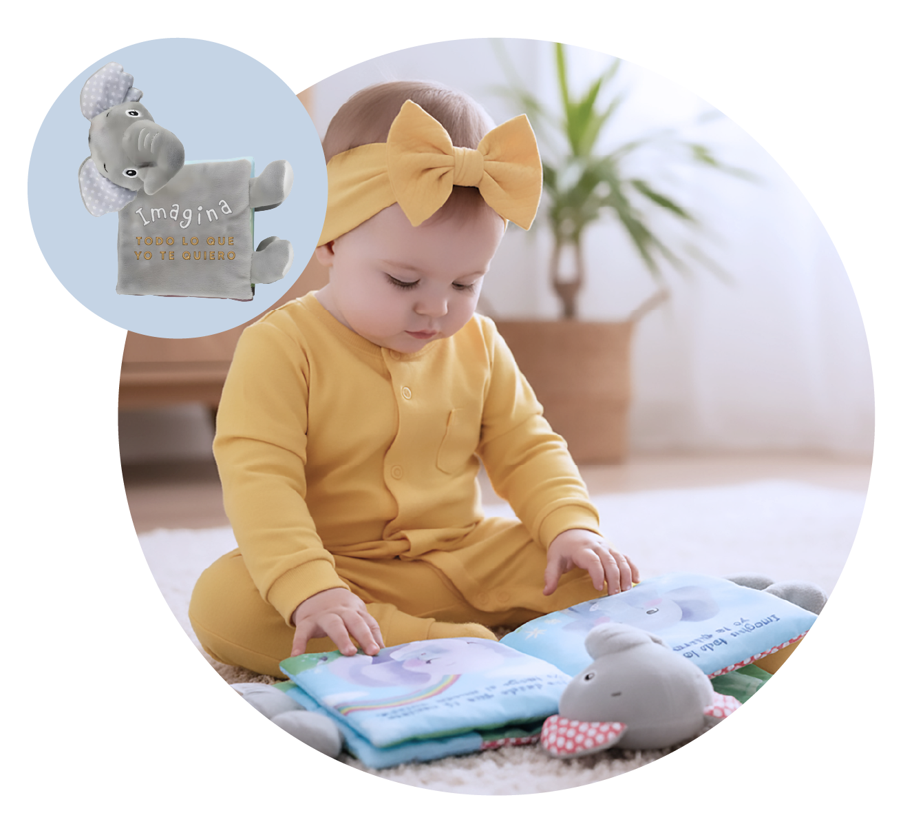Estimula el desarrollo sensorial y el lenguaje con su suave textura de tela. Su diseño con cabeza y patas de elefante invita a tu bebé a explorar y disfrutar mientras refuerza su seguridad emocional.