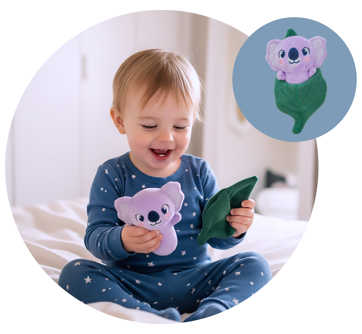 Este suave compañerito invita a tu peque a seguir una rutina nocturna sencilla: acostarlo, taparlo y desearle buenas noches.