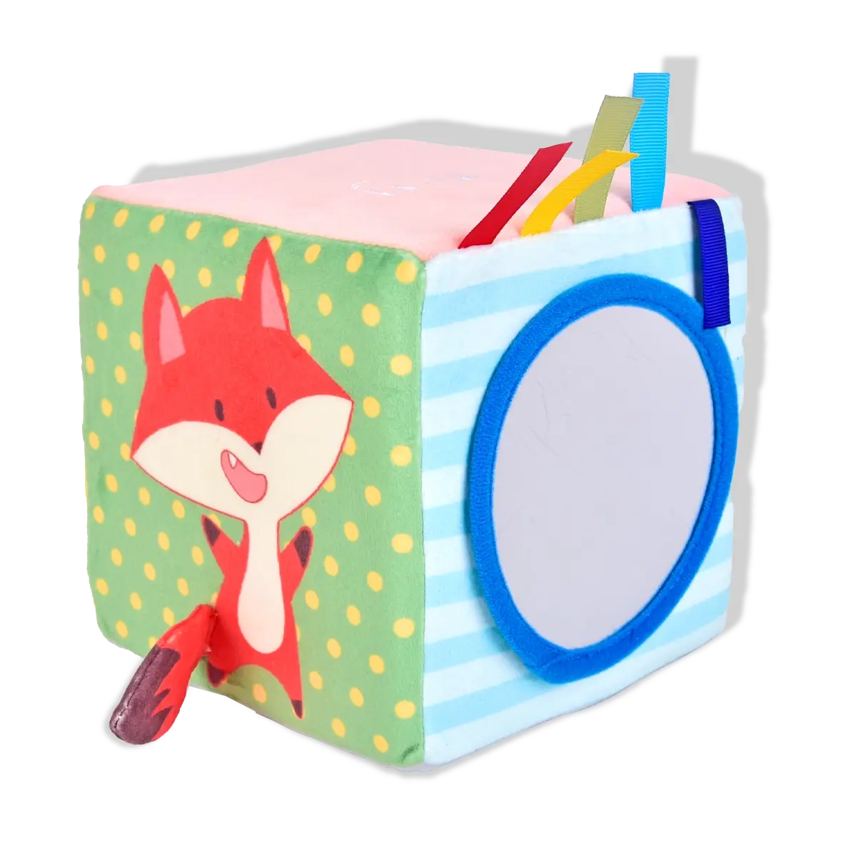 Este cubo ofrece una experiencia distinta en cada cara: texturas, formas y hasta un espejo para que tu peque descubra su imagen.
