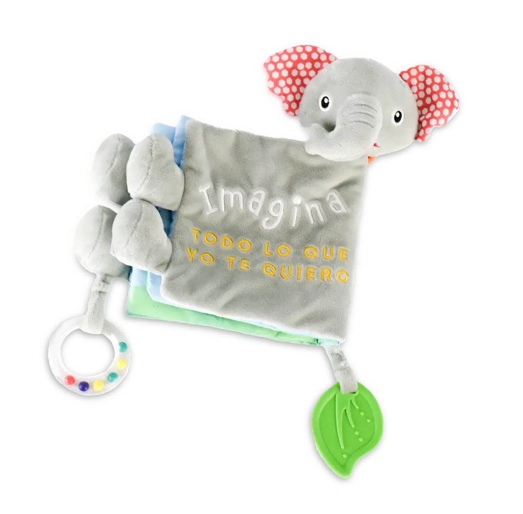 Estimula el desarrollo sensorial con su suave textura de tela. Su diseño con cabeza y patas de elefante invita a tu bebé a explorar y disfrutar mientras refuerza su seguridad emocional.